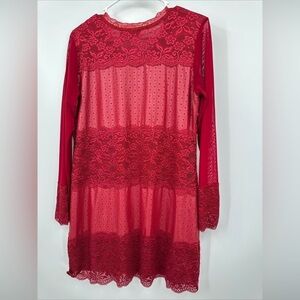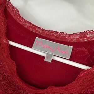 PRETTY ANGEL Red Lace & Faux Leather Stars Cutout Dress Size Large