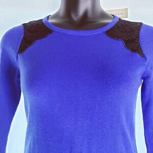 New size Small knitted cobalt blue colored dress with black lace detail. Long sleeves, mini length, ultra glam. Order it today 🙂❤️