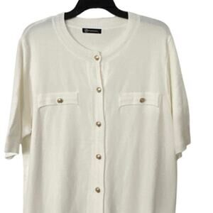 PRETTY GARDEN Ivory Textured Short Sleeve Gold Button Cardigan Sweater Large