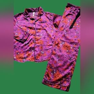 PRETTY GILLIGAN & O'MALLEY PURPLE/RED PAISLEY PRINT SILKY PAJAMA SET SZ. SM