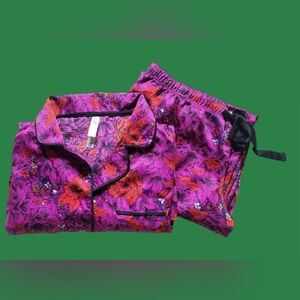 PRETTY GILLIGAN & O'MALLEY PURPLE/PINK/ORANGE PAISLEY FLOTAL PRINT SILKY PAJAMA-SLEEPWEAR SET
