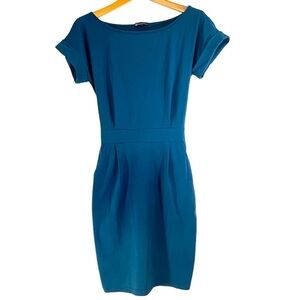 PRETTY Garden Turquoise Short Sleeve Crewneck Casual Dress Women's Small