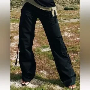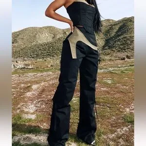 Black Contrast Panel Pocket Detail Pants