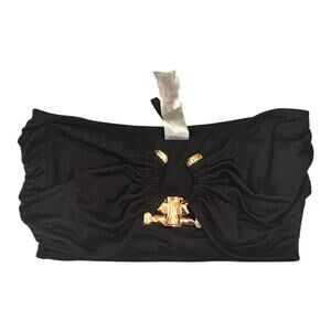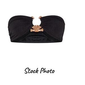 PRETTY LITTLE THING Black w/Gold-Tone Center Embellishment Bikini Top Size 6