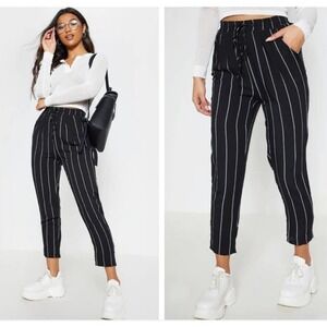 PRETTY LITTLE THING Diya Black Pin Stripe Casual Pants