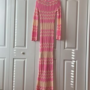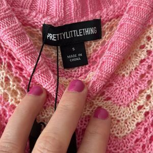PRETTY LITTLE THING PINK WAVE KNIT TEXTURED MAXI DRESS Size Small NWT