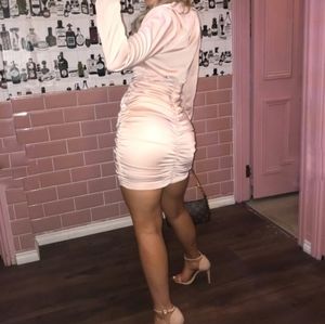 PRETTY LITTLE THING Rouched Detail Long Sleeve Bodycon Dress Nude/Blush