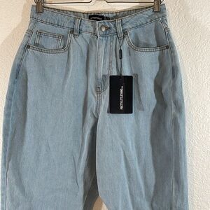 PRETTY LITTLE THING Shape Vintage Ripped Hem Straight Leg Denim Jeans Size 8 NEW