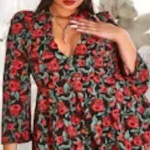 PRETTY LITTLE THING Skater dress with rose print and plunging neckline size 22