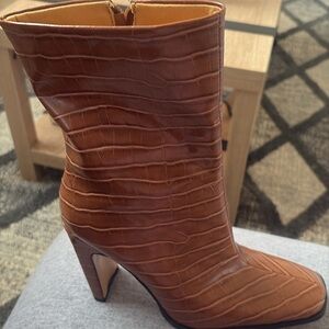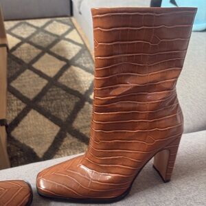 PRETTY LITTLE THING TAN SNAKE EMBOSSED BOOTS SIZE 5