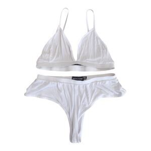 PRETTY LITTLE THING White Lingerie Bra Set Bralet Thong Panty Sz 6 Simple Clean