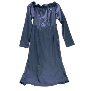 PRETTY LITTLE THING Women's Dress Blue Silky Maxi Ruffled Side Seam Slit Size 4
