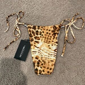 PRETTY LITTLE THING mix and match ribbed tie side bikini bottom, size US 4, in leopard print, made of polyester and elastane material. Brand new with tag.NWT #prettylittlething #leopardprint #bikinibottom