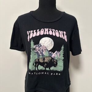 **PRETTY REBEL* Black Yellowstone Short Sleeve Crop Top Size Large