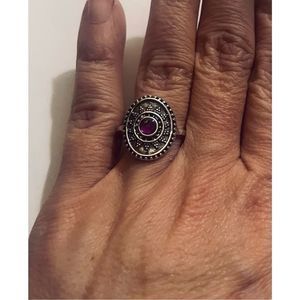 Pretty silver purple stone boho coin ring. Unique design and pretty ring. Size 6. NWT #purplering, #purplestonering, #coinring, #bohoring, #silverring
