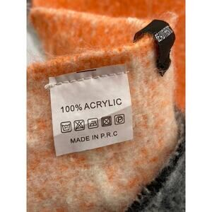 PRETTY SIMPLE Women's Beige-Orange-Black Autumn Spice Checkered Fringe Scarf SZ OS