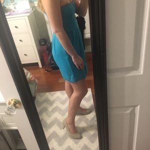 Great condition! I do not have the belt that goes with it (can’t even remember what the belt looked like to be honest), but there are wholes for a belt you can see in the pictures. You can either use your own belt or cut the loops off! Very pretty color. I am 5’2” so you can tell the height. Very pretty color! Zipper in the back. Please use offer button. Fast shipper and suggested user.