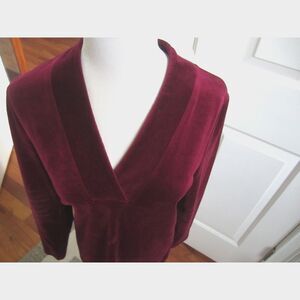 PRETTY TALBOTS RASPBERRY VELVET LONG SLEEVE V-NECK TOP, SIDE SLITS SIZE XS BUST 34" LENGTH 27" GREAT TOP FOR THE HOLIDAYS