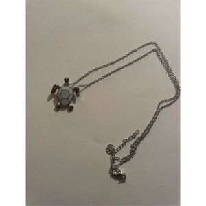 Stunning white opal on silver turtle. A stunning piece that shines vibrant with colors in the light. Very unique and eye-catching. Comes with a chain. NWT #turtlenecklace, #turtlejewelry, #opalturtlenecklace, #opalnecklace, #whiteopalnecklace