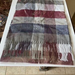 Pretty Checked Scarf w Fringe! Burberry like style! 13.78” x 74.80”. Cashmere.