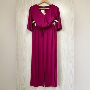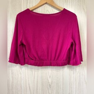 PRETTYGARDEN 2 Piece Outfits For Women 2024 Summer Short Sleeve Wrap V Neck Crop Tops Wide Leg Pants Set Redish Purple Size M NWT