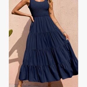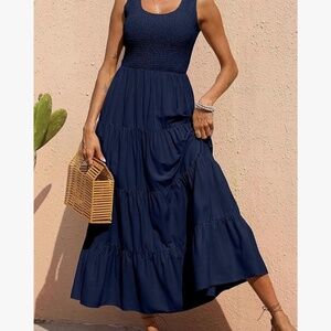 FLOWING FABRIC: Soft and comfortable fabric makes the sleeveless summer dress for women maxi length flow with body wonderfully; This tank smocked dress women with tiered detail is made of premium material to give you the maximum comfort; The tiered maxi dresses for women 2025 with sleeveless should be the new trendy womens spring/summer dresses for women 2025