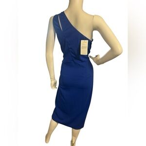 Step out in style with this elegant blue one-shoulder dress. Perfect for any occasion, this dress features a chic design that enhances your silhouette. The vibrant blue color adds a touch of sophistication to your wardrobe.