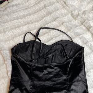 PRETTYLITTLETHING Black Satin Bodysuit Bodice Zip Side Strappy Back 0 XS