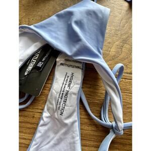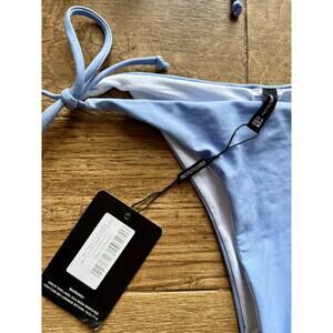 PRETTYLITTLETHING Blue Tie Front Frill Plunge Bikini Top US 6 UK 8
