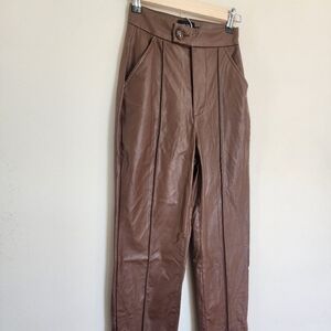 PRETTYLITTLETHING Chocolate Faux Leather Pintuck Detail Straight Leg Pants sz 00
