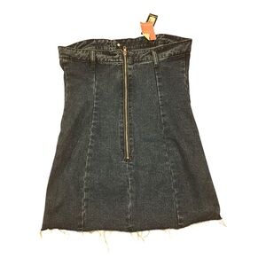 Stylish black denim strapless dress with frayed hem. Perfect for casual outings. New with tags! Thanks for shopping my closet! 🫶🏼I accept ALL REASONABLE offers! Bundle now for an even bigger discount! ⭐️ 4.9 seller rating 💌 1.1 day ship time 🚪 @made_in_correia