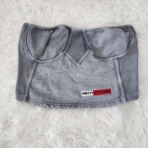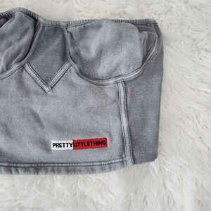 PRETTYLITTLETHING Grey Washed Rib Panel Bandeau Corset Top. Size Large. New.