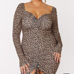 Plus brown leopard ruched front long sleeved Bodycon dress