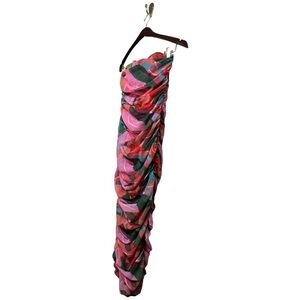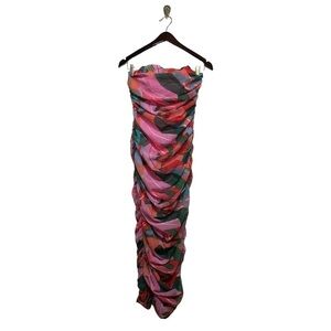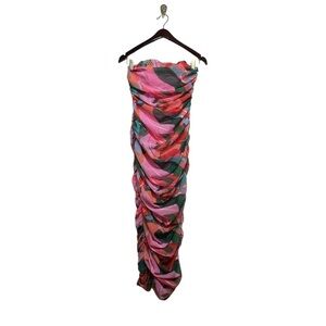 PRETTYLITTLETHING Multi Tropical Pointed Bandeau Mesh Ruched Midaxi Dress 4