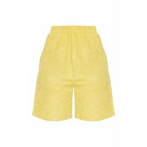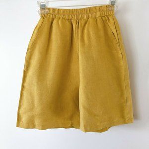 Featuring a mustard yellow faux suede material, the shorts come with an elasticated waistband, pocket detailing that go with the matching jacket to complete the look