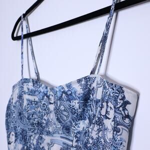 PRETTYLITTLETHING NEW Structured Corset Top Blue Renaissance Print Women's 2