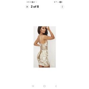 PRETTYLITTLETHING NWT Gold Sheer Panel Strappy Sequin Bodycon Dress Size 12