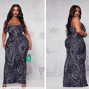 Hit refresh on your weekend wardrobe with this maxi dress. Featuring a black plisse material with a swirl print, a cowl neckline and a maxi length, we're obsessed. Style with clear heels and hoop earrings to have all the attention on you.