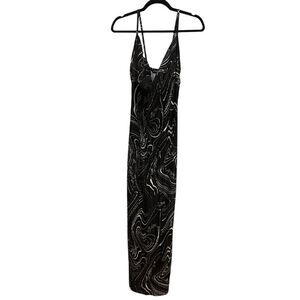 Step out in style with this elegant black and white swirl dress. Perfect for any occasion, this dress offers a flattering fit and eye-catching design.