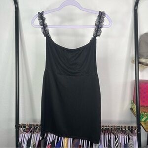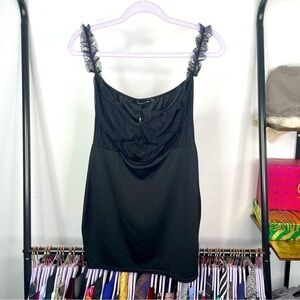 PRETTYLITTLETHING Petite Black Dobby Mini Mesh Dress