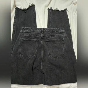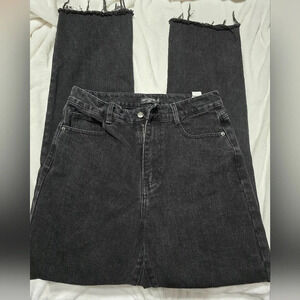 PRETTYLITTLETHING Tall Washed Black Long Leg Straight Jeans, Raw Hem, Sz 8, EUC!