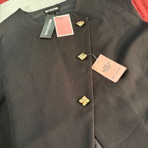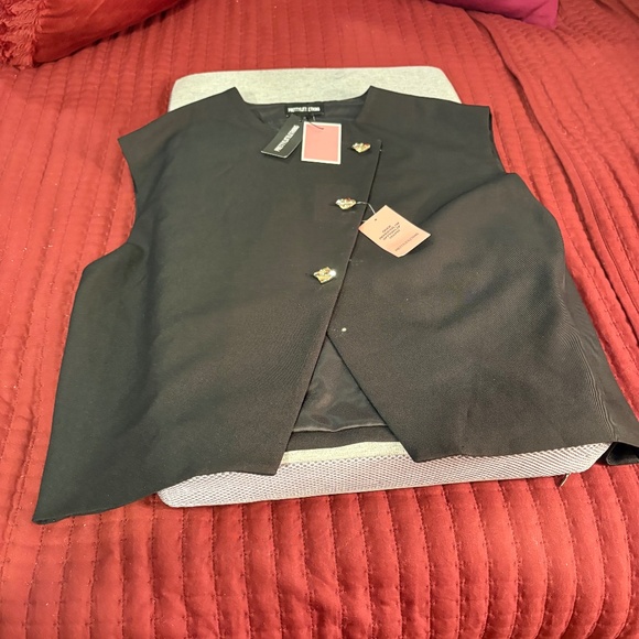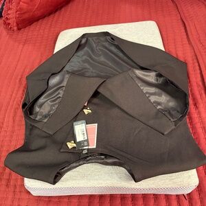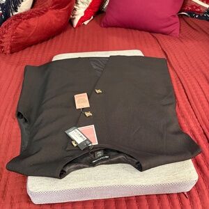 This vest is short sleeve and is black in color and is brand new never been used tags are attached. The vest buttons up the front with 3 gold buttons and it is fully lined.