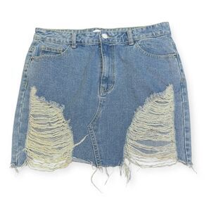 PRETTYLITTLETHING Women’s Blue Distressed High-Waisted Denim Mini Skirt Size 10