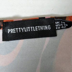 PRETTYLITTLETHING Women's Long Sleeve Crop Top Size 10 Orange Multi Print