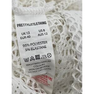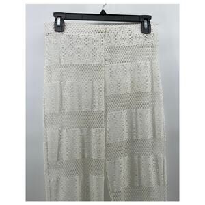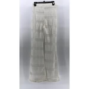 PRETTYLITTLETHING Women's White Mesh Elastic Waist Pull-On Wide-Leg Pant SZ 8