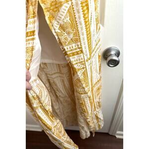 Summer, resort. Vacay, beachy, flowy, side slit, leg slit, golden, puff sleeve, romantic, breezy, fairy, fairycore