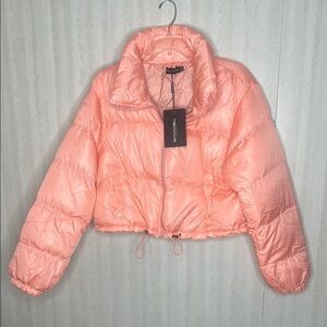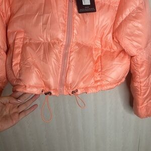 🆕 PRETTYLITTLETHING peach cropped puffer bubble jacket size 10 NWT