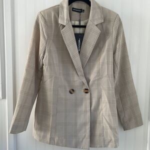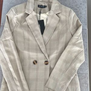 PRETTYLITTLETHING women’s loose fit stone checked woven blazer NWT size 4