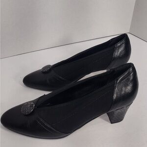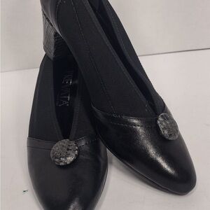 PREVATA Black Heeled Shoes Sleek Designs size 4 pre owned Exellent condition
