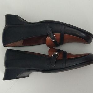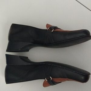 PREVATA woman 7 brown black slip on low heel dress shoes